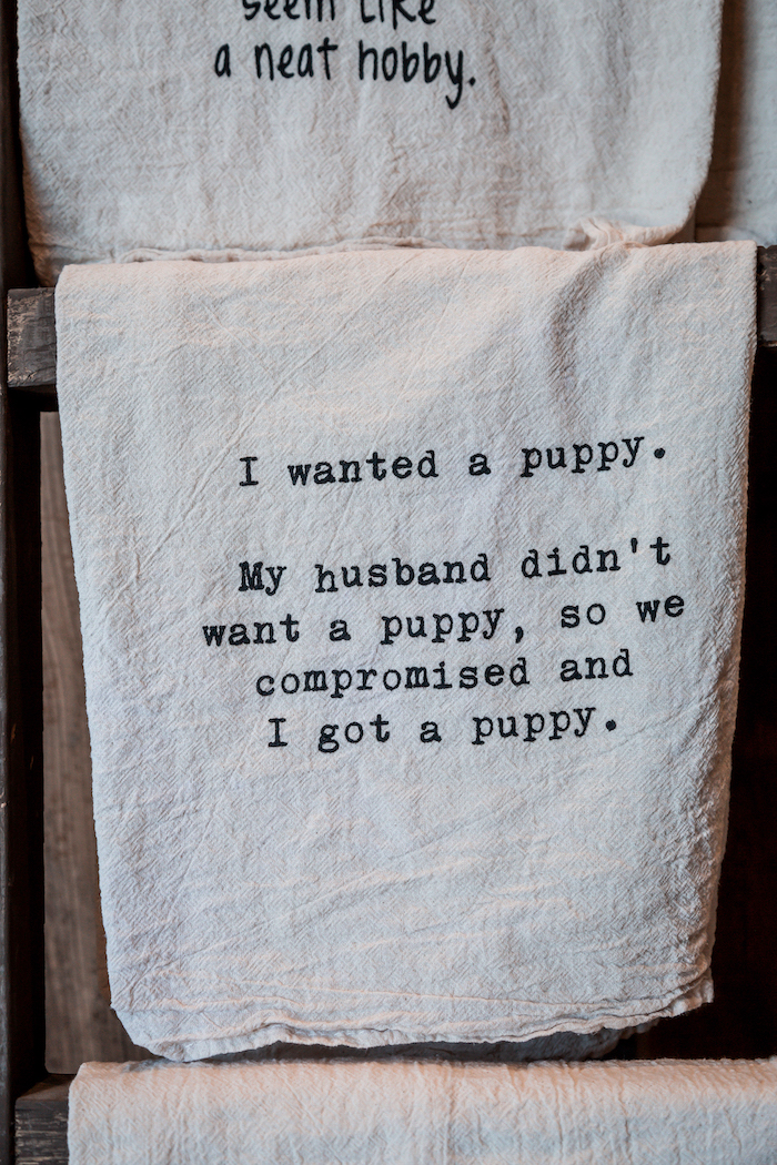 Towels sewn and printed by hand (by an all female team!) in Michigan from 100% unbleached cotton. They measure approximately 24" x 26" when opened up, and can be thrown in the washer and dryer. They're printed with an eco-friendly, water-based ink, that's good for the environment and soft to the touch! Our towels are made from a flour sack material, that softens with each and every wash!